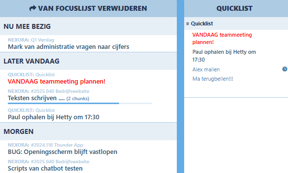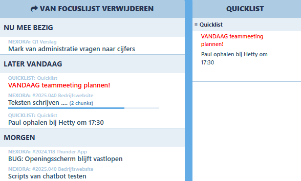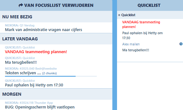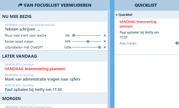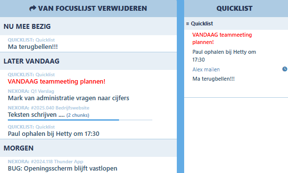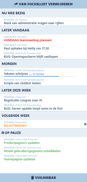 Je Focuslijst houdt je belangrijkste to-do’s helder in beeld, zodat je stopt met piekeren over wanneer iets moet en je goed kan voelen over wat je hebt afgerond.