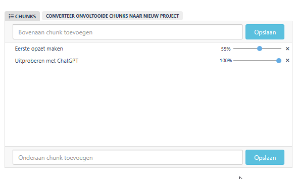 Werk de chunks af in 'Nu Mee Bezig' en schuif ze naar de finishlijn.